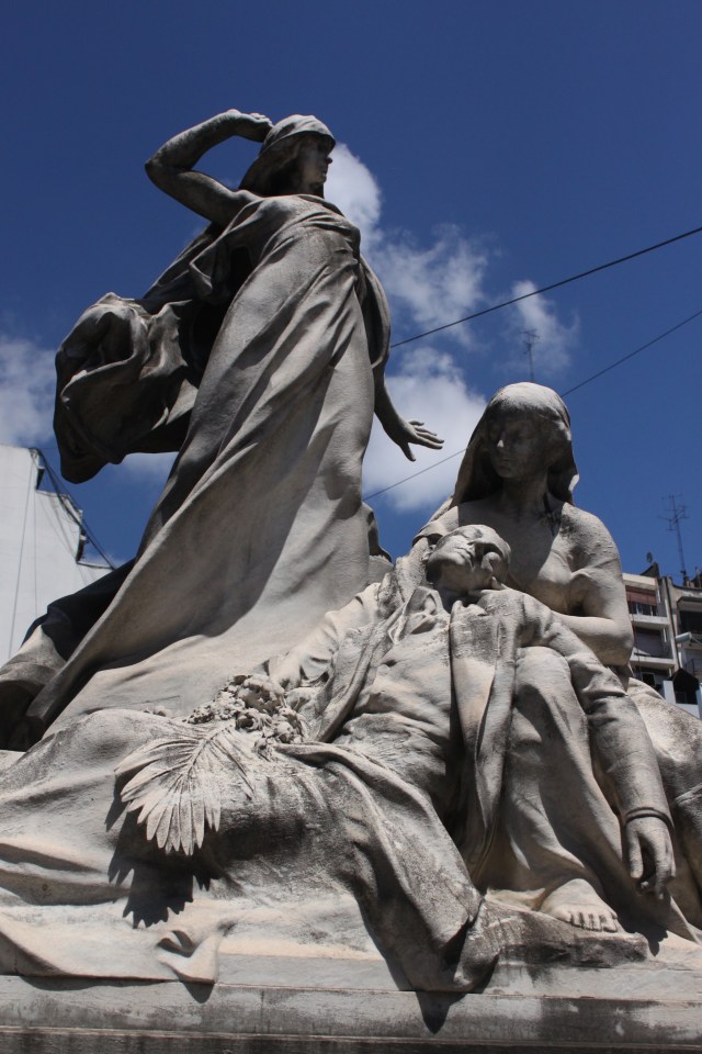 I thought their grim humor would soon decompose as I walked the ground, wishing my feet weren’t killing me. I almost died when the sight of (what I thought was) a living angel popped out of the ground through the crack in a tomb’s door, it had me sputtering and coffin‘ for sure. My life was rotting away in the heat and it was time to terminate my visit to the reaper’s playground. I followed the tourists to Evita’s grave, then said bye bye to the death museum.