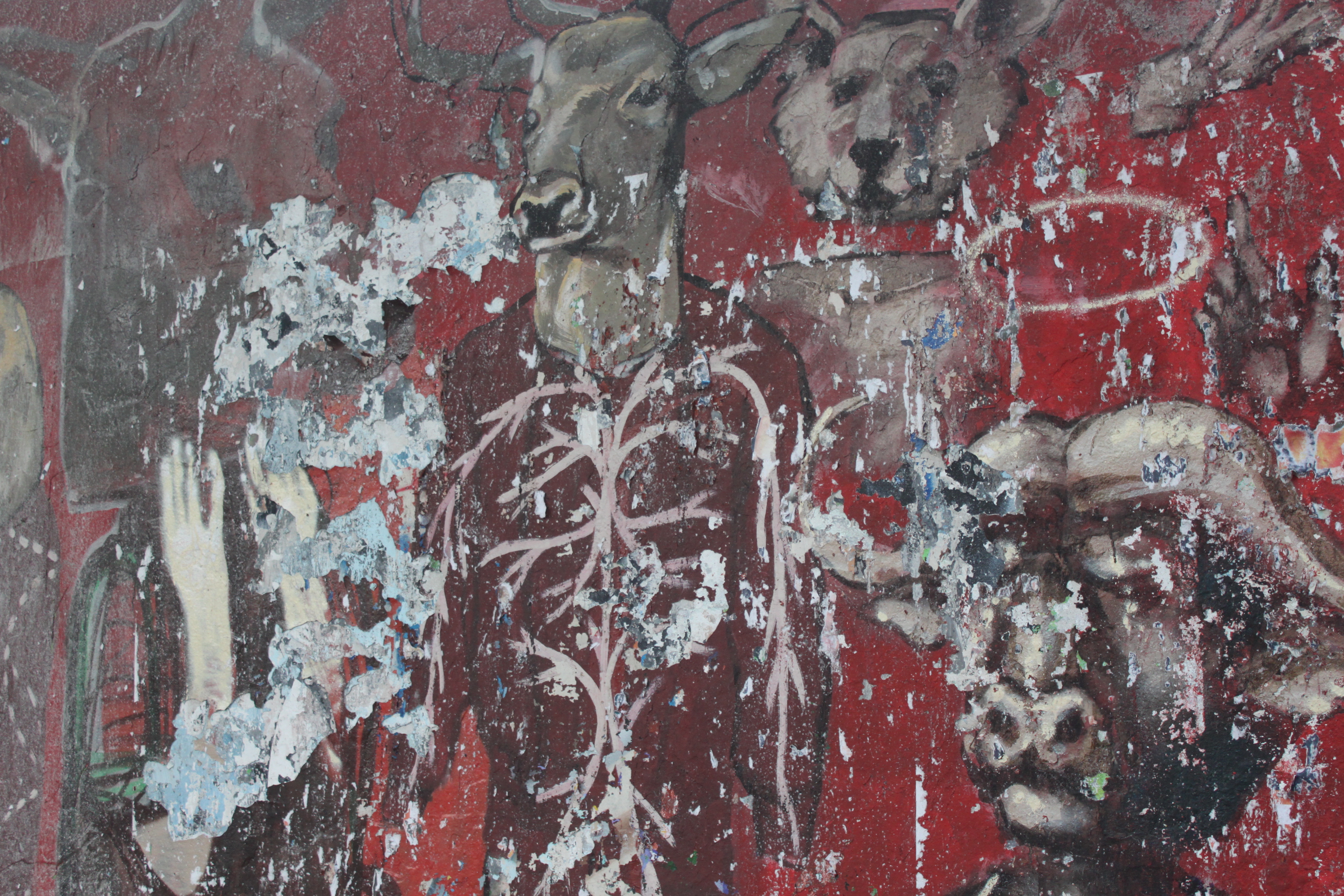 It began with dinner with ****, I never see his face only the grafitti on the wall next to our table on my right, it is a bunch of small geometric shaped faces. In the background is the diner out of Nighthawks by Edward Hopper, **** is standing at the window.